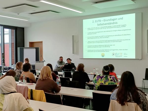 Zu Europäischem Protesttag der Gleichstellung von Menschen mit Behinderung hielt unser Peer-Berater Xiao Zhen gern einen Vortrag unter dem Titel „Teilhabe ermöglichen – Selbstbestimmung stärken“ an der Katholischen Stiftungshochschule München, im Rahmen der vom Verein Donna Mobile AKA e.V. in Kooperation mit der Aktion Mensch organisierten Vortragsreihe mit Podiumsdiskussion zum Thema „Arbeitsmarktintegration geflüchteter und von FGM/C betroffener Frauen – Zwischen Teilhabe, Anerkennung und strukturellen Barrieren“. Die Veranstaltung widmete sich den besonderen Herausforderungen, denen die von FGM/C betroffene Frauen begegnen – von gesundheitlichen und psychosozialen Folgen bis hin zu Fragen der rechtlichen Anerkennung einer Behinderung. Herr Zhen brach in die lebendige Diskussion seine Beratungsperspektive aus der EUTB der Charter 22 mit ein und zeigte ebenso Chancen, aber auch Grenzen der EUTB-Beratung bezüglich der Unterstützung für von FGM/C betroffene Frauen auf. Darüber hinaus betonte er die vorhandenen Kooperationspotenziale zwischen den Akteuren im Unterstützungssystem und hob die Relevanz und Notwendigkeit einer guten und effizienten Vernetzung hervor. Abschließend hat Herr Zhen alle Fragen aus dem Publikum beantwortet. Die Veranstaltung nahm er als äußerst bereichernd und horizonterweiternd für alle Teilnehmenden wahr. Charter 22 freuet sich schon auf weitere Kooperationen.